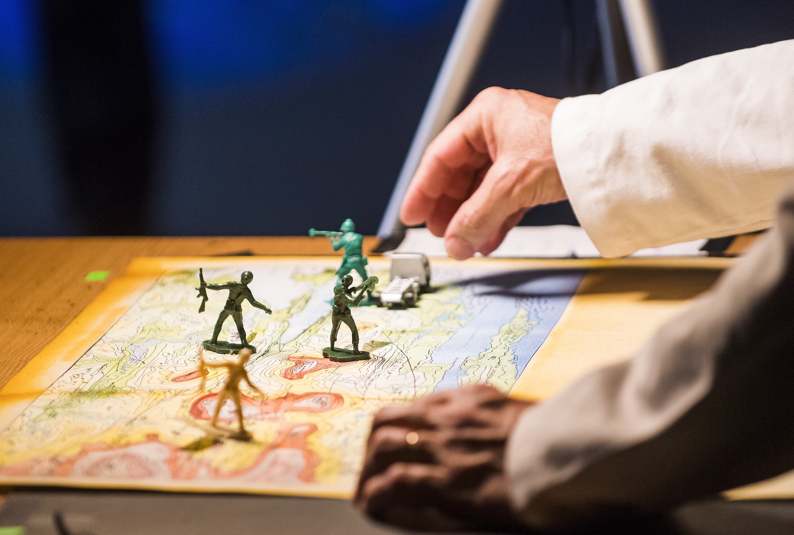 - On stage therapy as one veteran shares his searingly honest and painful memories of the war to another, now trained as a Psychologist;