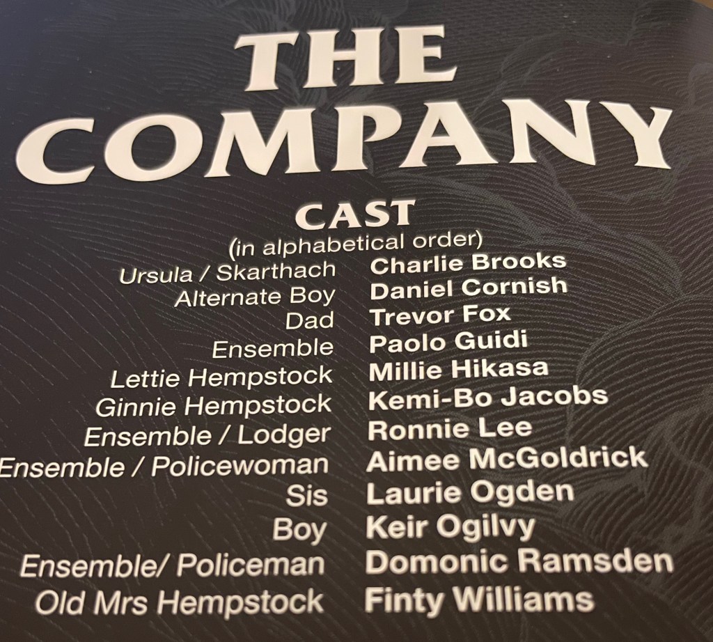 Adapted for stage by writer Joel Horwood, and directed by Katy Rudd, I’m not close enough to the text to know how this fact influenced the original story and how close to the text the adaptation was…but it doesn’t matter and maybe I’ve always liked fantasy after all. I’ve just been too busy entrenched in kitchen-sink dramatics and gritty dialogue for too long.