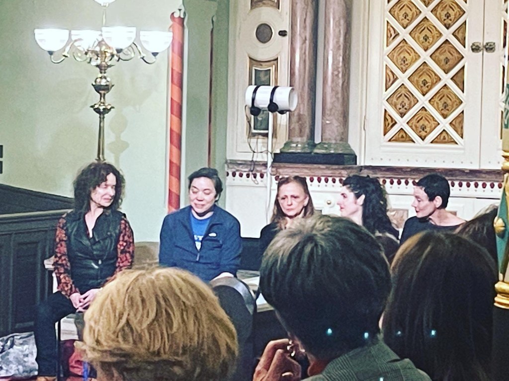 After enjoying 60 minutes of frenetic and energetic theatre, and drinks in the charming cafe bar in the museum, we were treated to a Q&A back in the synagogue, with Julia Pascal and the actors – in fact, let’s take an moment for an overdue introduction:
