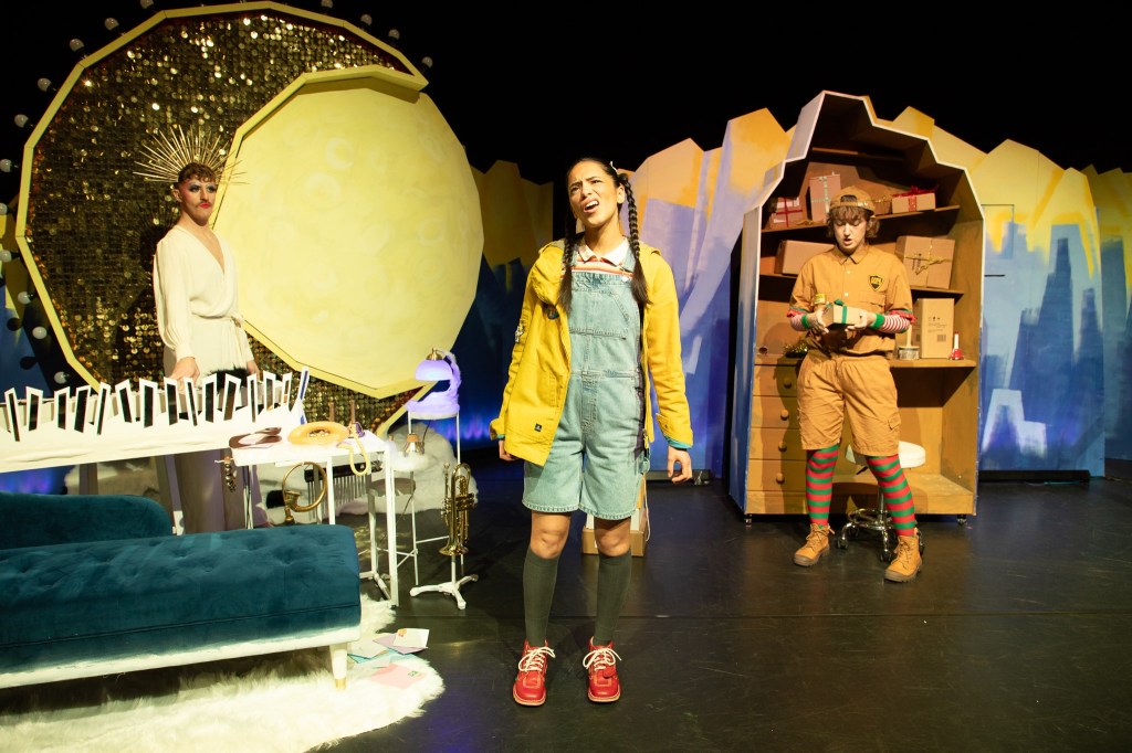 Back to my voyeurism in the audience, the mums and dads seemed to warm up as the show moved on, with smirks, titters and laughter breaking through as appreciation was shown for Madge’s oh so very extra (and so very intended) performance. Similarly the children’s laughter broke through mostly in response to visual prompts and triggers, as you would expect. But even more telling from the younger ones, ironically, was the relative silence – clearly captivated by the magic of the relatively simple but still sensory treat taking place, with flashing, twinkly lights, engaging performances by the actors and, (spoiler) the eventual snow cascading down.