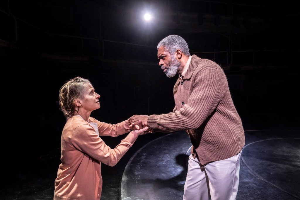 As we’re taken through 30 years of each couple’s relationship, the non-linear nature of the story is aided and abetted by a screen flashing up the year, as we rapidly jump from 1994 until eventually 2024, and in and out of all the years in between.