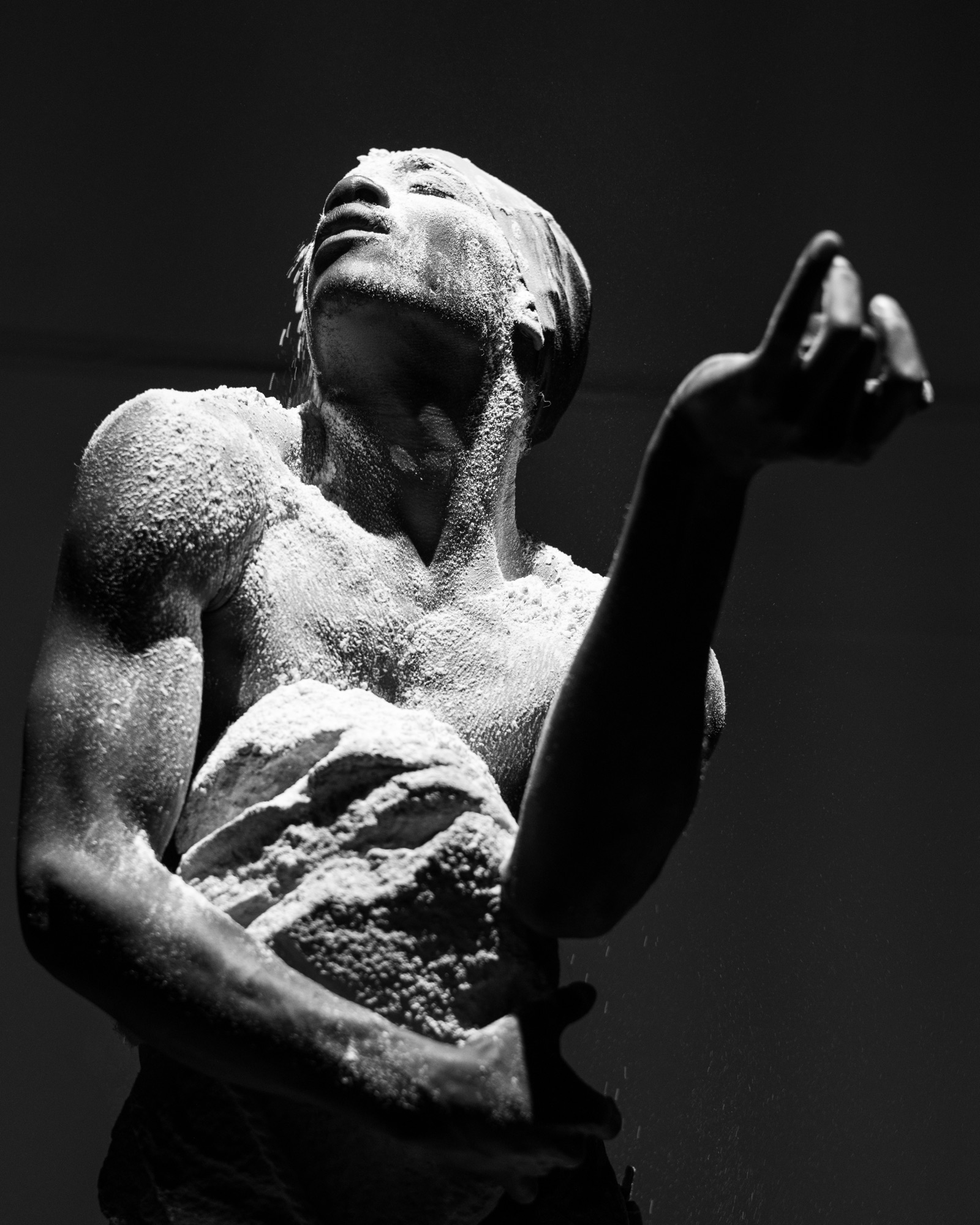 The incredible lighting set-ups, haze, wind machine and indeed ethereal, ambient hip-hop that is the accompanying music from DJ Andrew Wong, all come together in perfect synchronicity as Benji Reid takes us on a privileged and immersive journey, which explores not only the importance of exploring and depicting life’s experiences through art, but invites us in to the artist’s world and behind the curtain, as it were, as the active creation is given equal footing in importance to the final piece itself.