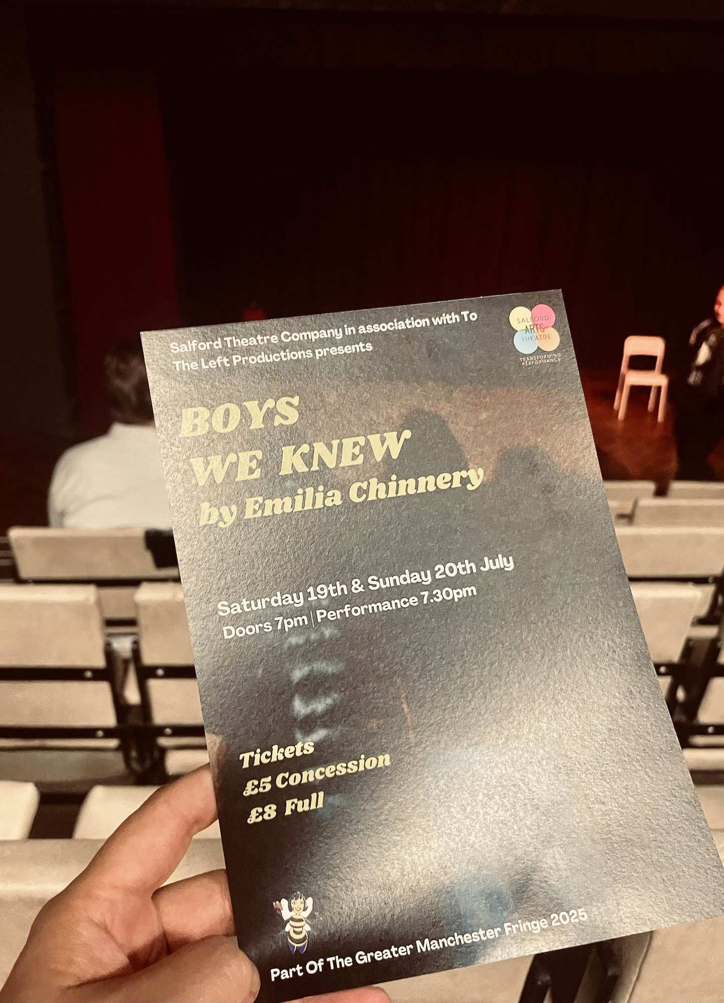 Boys We Knew was produced By Salford Arts Theatre in association with To The Left Productions, with the support of the Shelagh Delaney New Writing Award, and part of this year’s GM Fringe Festival.