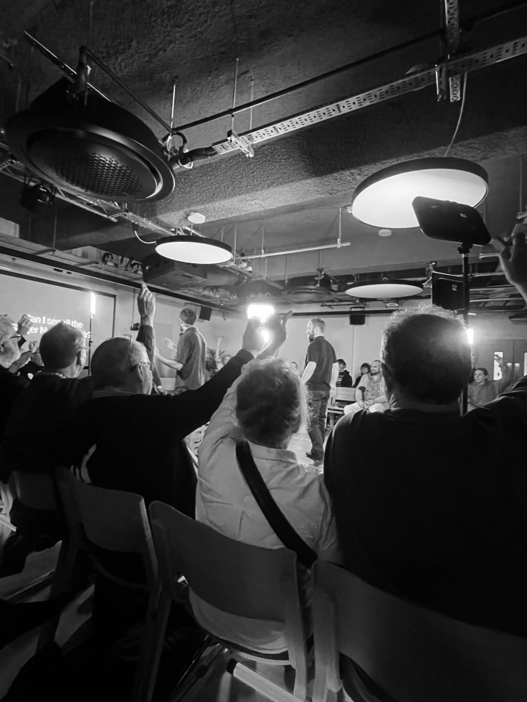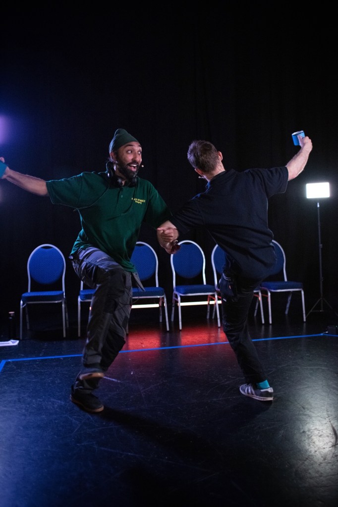The line between the pre-show gathering and chatter, and (in this case) metaphorical ‘curtain up’ was blurred as, performers and co-creators, Matthew Winston & Deepraj Singh, spoke with seated audience members and got to learn a little about them.