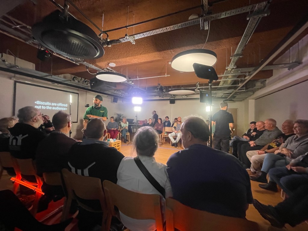 I hope this gentlemen realised from my signs of appreciation throughout the performance, that I was quickly, and very much, a Shedder ally. However, I should point out at this juncture that to be a woman and ‘seemingly somewhat younger’ (thank you low lighting), were absolutely no barriers to becoming a Shedder, I was to learn that afternoon…