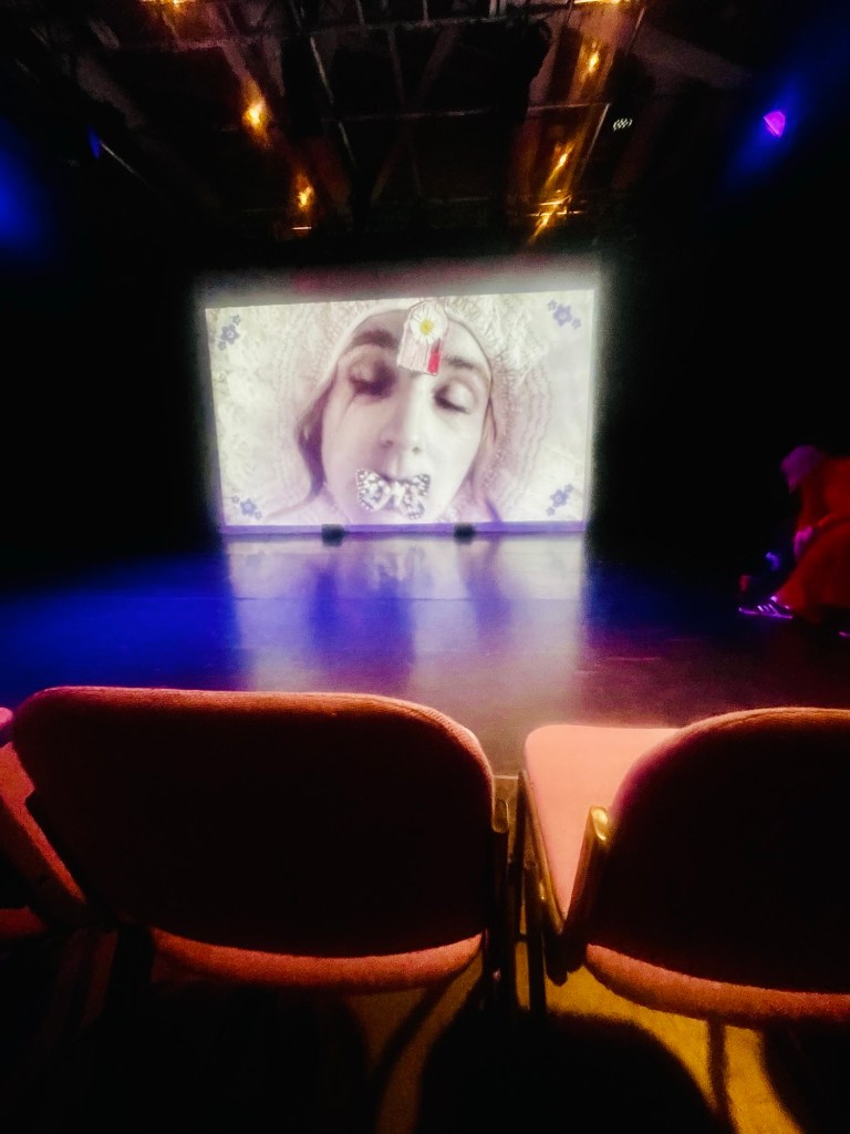 We headed to the Studio at Lowry, where I’ve had the privilege of enjoying a number of performances. And it is a privilege because in these smaller spaces, you were are up, close and personal with the artists and performers. And whilst geographically Corinne couldn’t be in the same space with us, in every other way they were, live streamed from the bed they have been almost entirely unable to leave for six years.