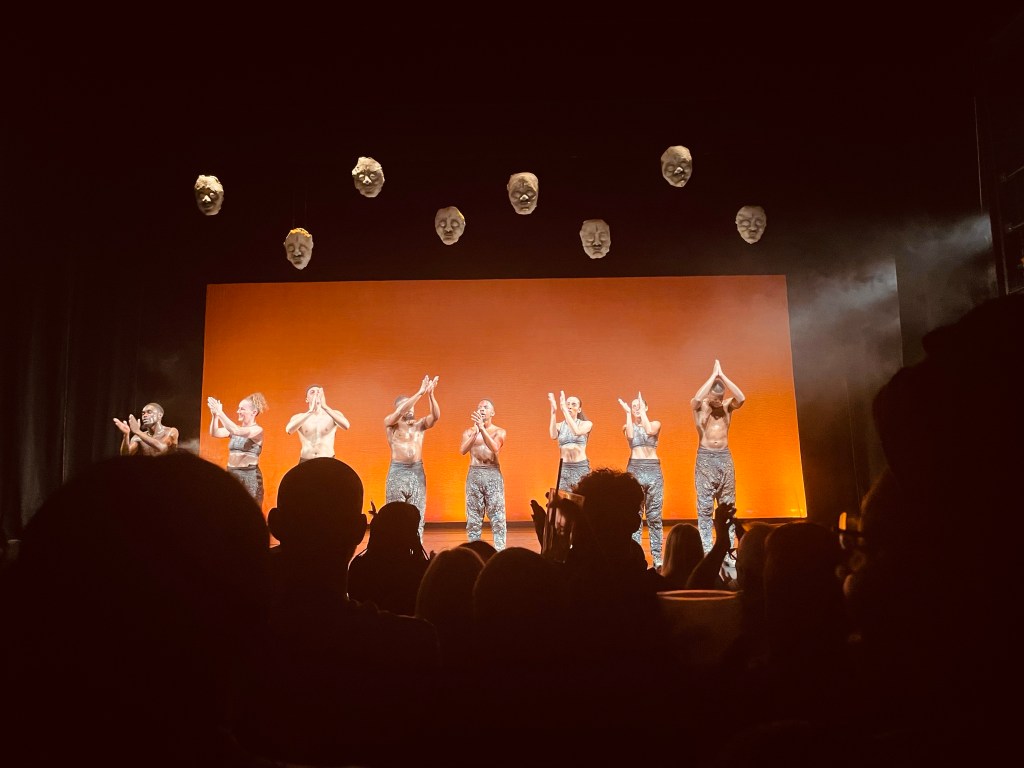 Musically, choreographically it was thrilling and powerful. Aesthetically it was beautiful, with use of projection, uv lighting, body paint and those pesky little props that screamed death mask to me, as they lowered then hung ominously above the dancers. I doubt a night will go by where I don’t see them in my dreams (cheers).